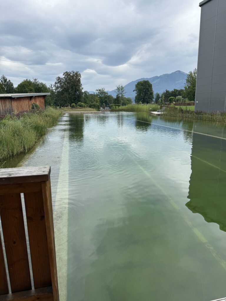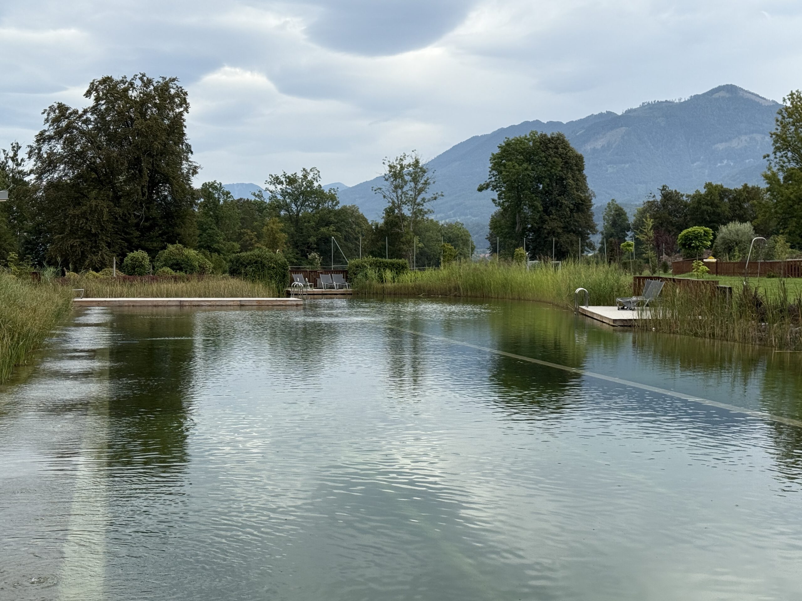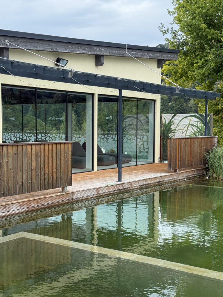 Im Feriendorf finden Sie hinter dem Hotel den Schwimmteich, den Sie kostenlos nutzen können. Dieser saubere Schwimmbereich mit Blick auf die Karawanken ist an die 50m lang und steht einem Pool in nichts nach.